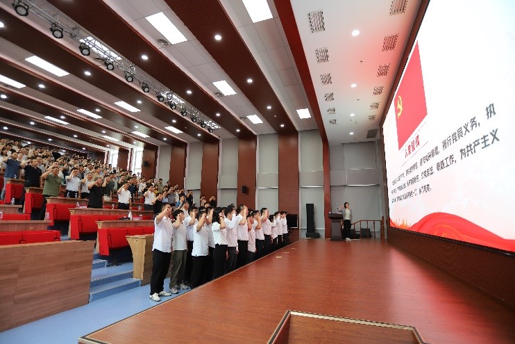 會上,今年新發(fā)展的37名黨員面向黨旗莊嚴宣誓,與會黨員共同重溫了入黨誓詞。